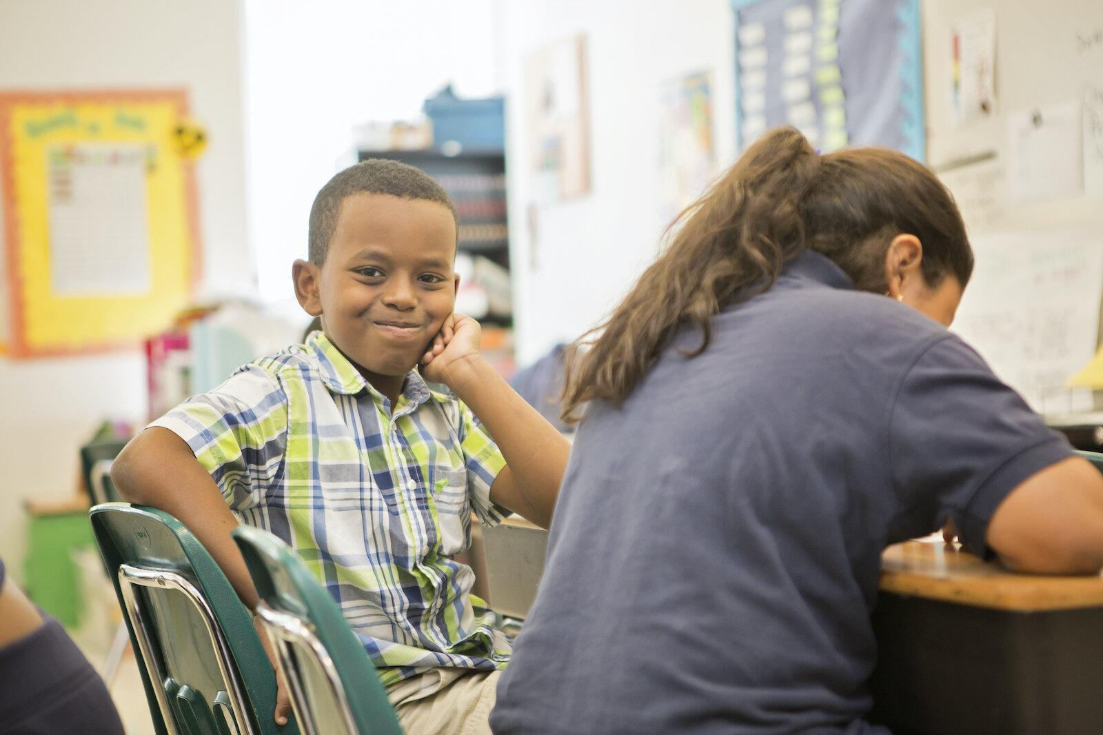Meridian uses a full inclusion model for students with special needs, which means that students learn alongside their peers in a full classroom.