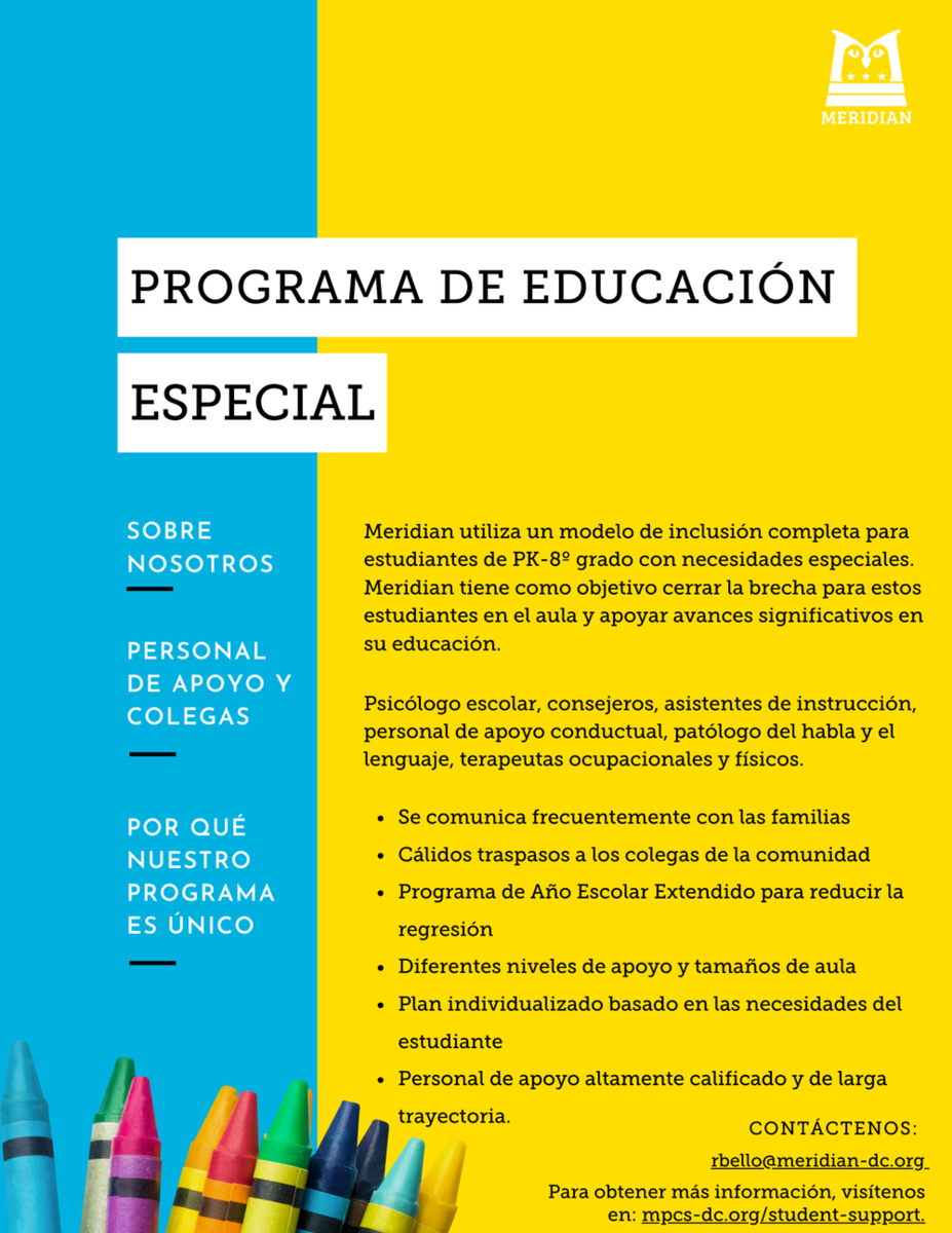 For questions about the ML programs offered at Meridian, please reach out to Ms. Rachel Chaney, Manager, Multilingual Learner Program at [email protected].
