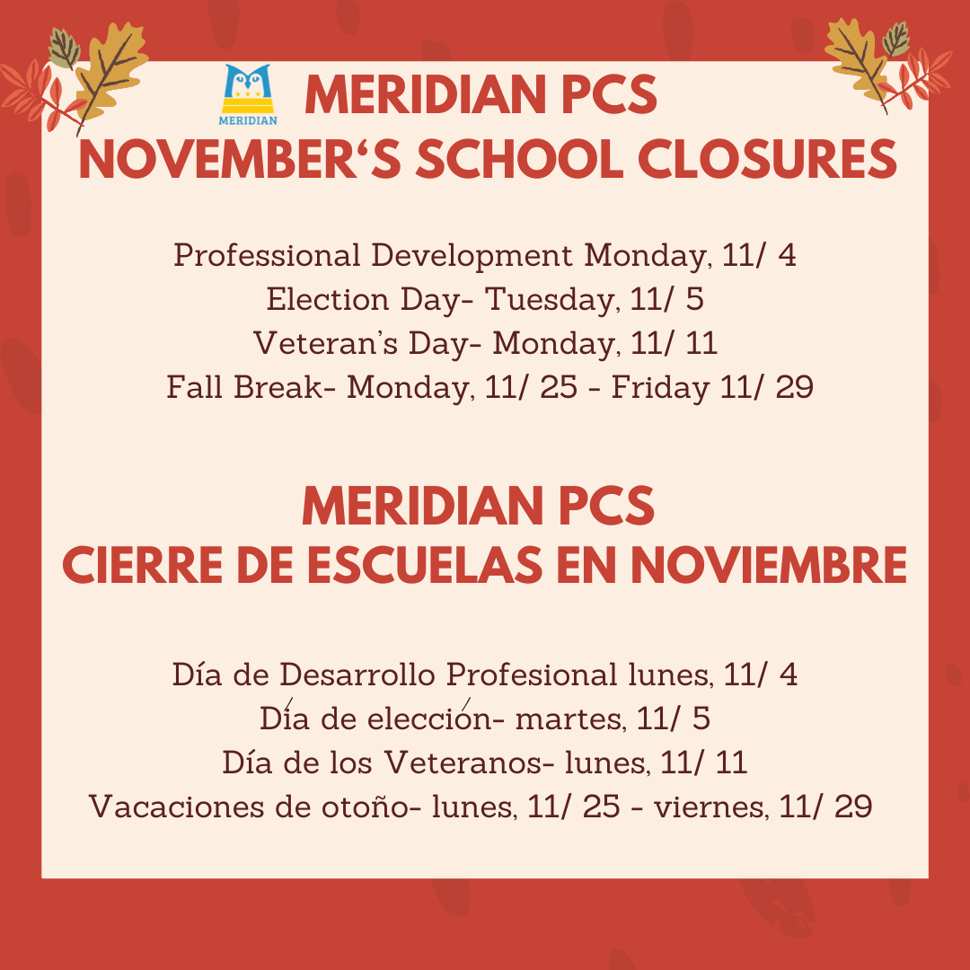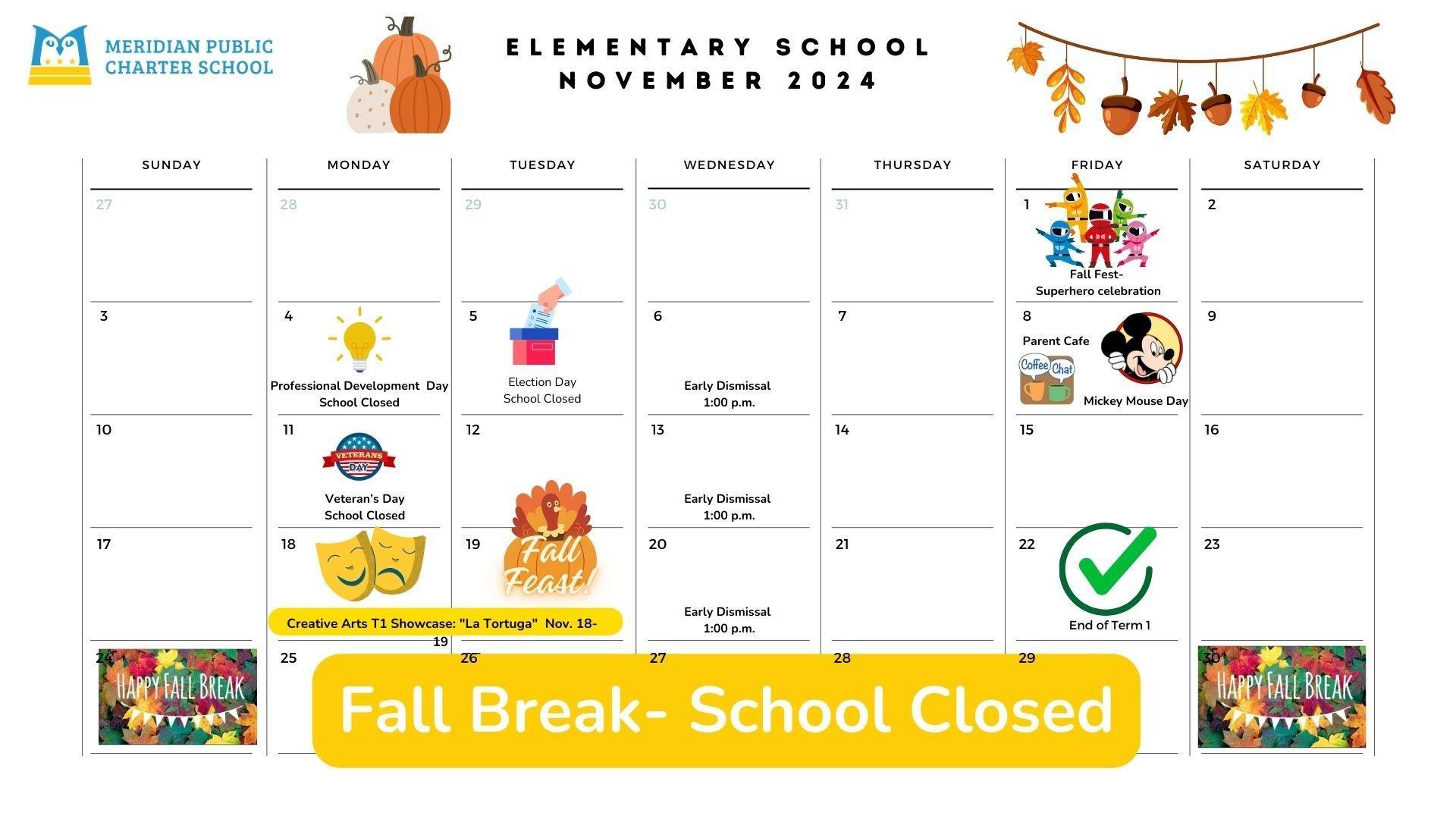 Below is the calendar for SY 2025-26 showing all school breaks, holidays, and parent-teacher conference days. We encourage families to use this calendar to begin to plan vacations or travel and schedule doctor appointments, and other personal events to reduce time away from school.